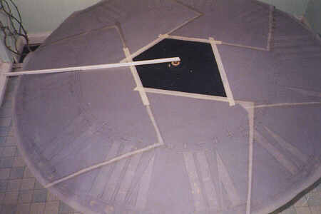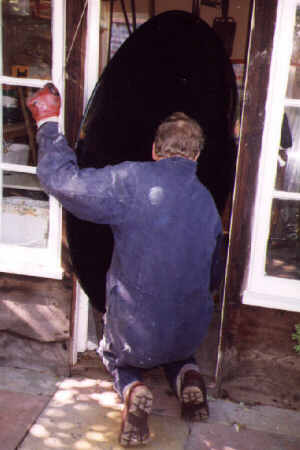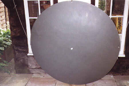 The face was beaten into shape by hammer and the rim bent round an iron hoop to form a perfect circle. Four undercoats and four topcoats of lead based paint were applied. |